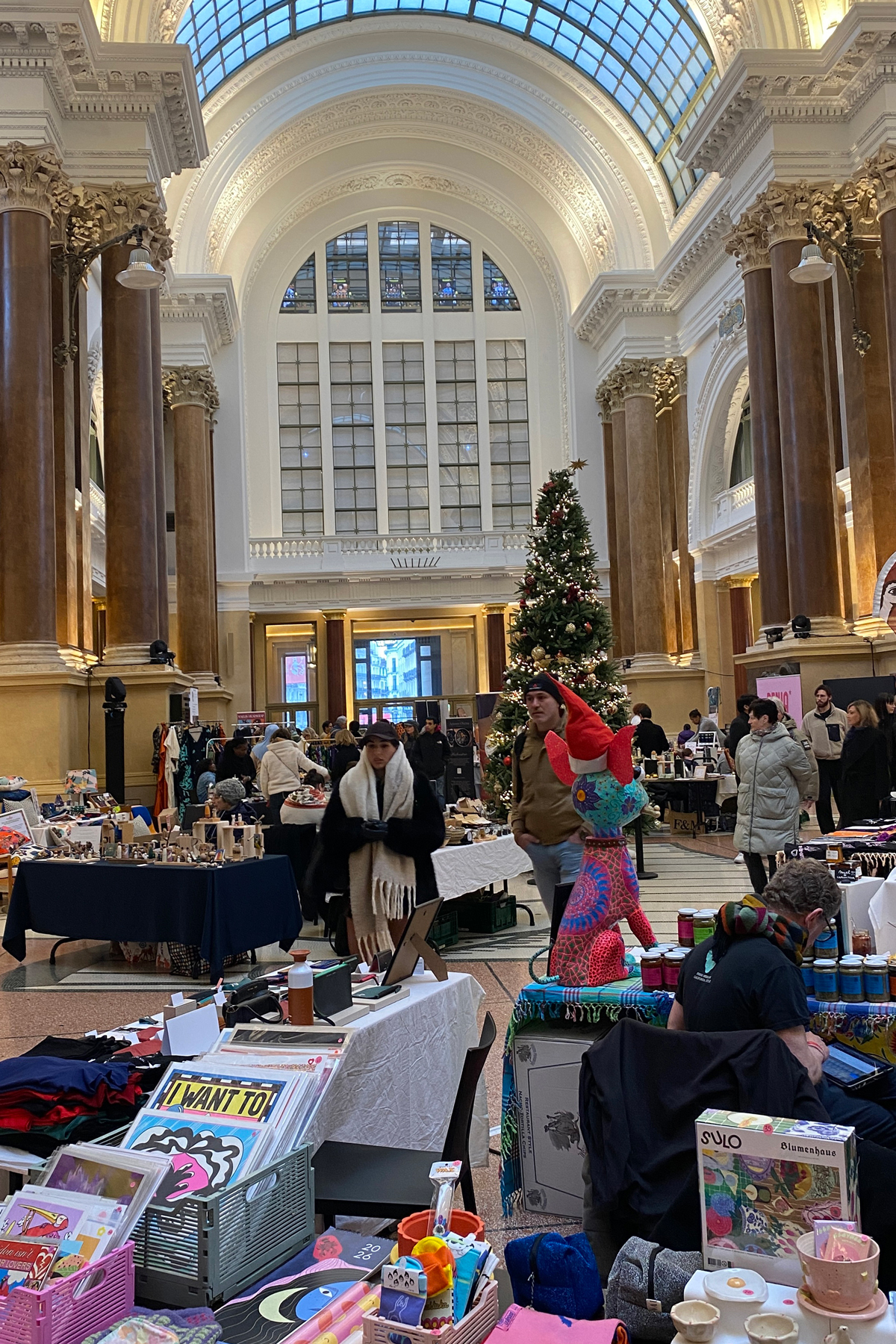 Nous sommes allées à la rencontre de beaucoup de nouvelles personnes en participant au marché de créateur.ices de Plaisirs d’Hiver, prenant place au sein de la magnifique Bourse de Bruxelles.