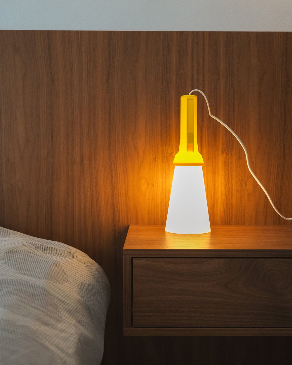 The Torch lamp illuminates your space while respecting the planet. Entirely designed and 3D printed in Brussels, it is made from bio-based materials derived from organic matter and is 100% recyclable at specialized centers.